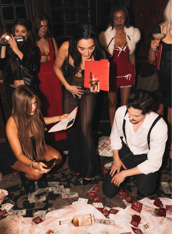 Just when I think I’ve cracked the case, the back doors of the venue swing open and the night’s live entertainment is under way. A swing band plays as I grab a cigarette, and try my hand at some roulette. I almost forget I’m supposed to be solving a murder. All of a sudden, a beautiful blonde in a sparkling bikini appears in a giant martini glass. She performs a showstopping burlesque routine that leaves the crowd speechless and covered in silver confetti.