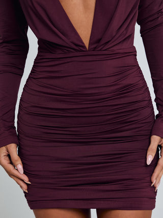 The Amelia Mini Dress in Dark Mauve is a modern mini designed to flatter!