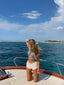 Style Bayley back with our Sola Mesh Corset Top & statment jewellery to dress her up. Or pair back with our Dayton Baby Tee for a more causal vacation fit'.