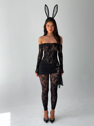 Crafted from a floral lace fabrication, Brittany is designed to have a body-con fit, followed with a flounced feature, silver 'O' ring hardware and an asymmetrical hemline! She is complete with ruched detailing and sits at a mini length to showcase your legs!