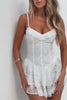 Featuring an underwire bust with a frill sweetheart neckline, thin adjustable shoulder straps and dainty bows to add a touch of femininity to the style. Dylan has a layered hemline and is crafted from a mesh lace fabrication! Complete with a cut out detail at the back with a clasp closure and a tie up corseted feature to get that perfect desired fit'. Dylan has a built in bodysuit so she is ready to wear and hassle free!