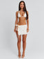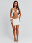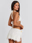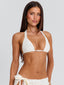 Meet our Hadley Top in White, a minimal silhouette designed for easy summer styling. Crafted from lace, she features a triangle bust with a halter neck tie for an adjustable fit. Faux pearl detailing at the underbust adds a soft finish, keeping the look clean and feminine. Perfect for vacations, beach days, or summer plans.