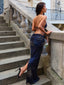 Crafted from power mesh fabrication and fully lined for a sculpted fit, she features chain hardware at the neckline, waist, and under-bust. The halter neck is finished with large beaded necklace details, while the back tie ensures the perfect fit. Complete with a sleek overlay panel and centre-back split, her maxi length makes a statement with every step.