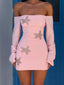 Made from soft, lightweight knit fabric and fully lined, it’s got just the right amount of structure without feeling too heavy. The off-shoulder design and loose, wide sleeves gives the dress a flirty, relaxed vibe. The starfish appliqués across the front add a fun touch. Just handle with care, as they can pull the fabric if not treated gently.