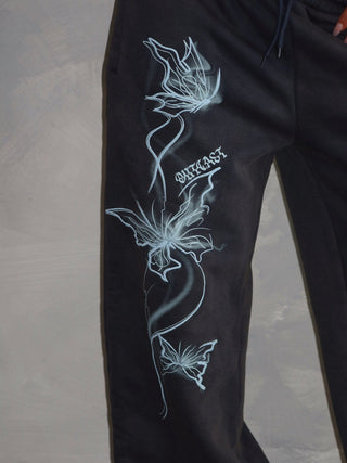 Our Nya Sweatpants are crafted from a brushed back fleeced fabrication (400 gsm) that sits softly on the skin and doesn't shed. Featuring a relaxed fit that extends down to the ankles, providing both ease of moment and a cozy feel. The drawstrings allows for an adjustable and secure fit. Complete with a gradient screen printed graphic along the leg to add an outcast flare. Graphics artwork designed and drawn in house, and perfected by our design team.