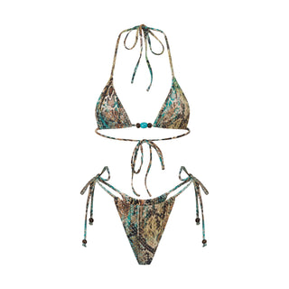 The Paloma Bikini Top in our exclusive Lana print is a classic triangle cut with just the right amount of detail. Designed with an adjustable halter neckline and back tie, plus a statement bead at the centre. Soft stretch fabric and double lining keep it secure and comfortable all day.