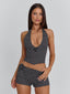 Cut from structured cotton, this halter-style crop features a sculpted bodice with a zip closure at the side for a flattering fit. It’s finished with a sweet rosette detail at the bust for that extra bit of charm.