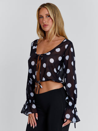 Meet our Revi Top in Black Polka Dot, she’s a sheer statement top made for nights out.