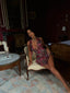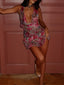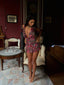 Crafted from printed georgette fabrication, this mini dress is all about playful charm with a touch of sultry edge. Her deep plunge neckline with a true tie draws attention, while the open-back design adds a flirty finish. The drop-waist bodycon silhouette is enhanced by tiered ruffle skirts and flounce details, creating movement with every step. Fully lined for comfort, Ria is your perfect statement piece.