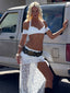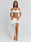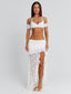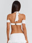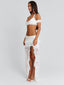 Meet our Rivana Top in White, a delicate lace bralette designed with soft feminine detailing. Crafted from lace and lined in poly-knit, she features a halter neckline with frill accents along the bust and sleeve edges for a romantic finish. A silver clasp closure at the back secures the fit, making her the perfect piece to pair with the Rivana Maxi Skirt.