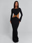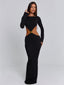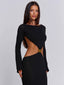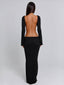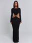 Cut from textured CMT knit, it’s designed to sculpt the body with a flattering body-con fit, maxi hem and soft long sleeves. The gold-tone hardware at the waist gently gathers the fabric to create delicate cut-outs, while the open back adds a refined finishing touch. Beautiful, effortless, and made to move with you.