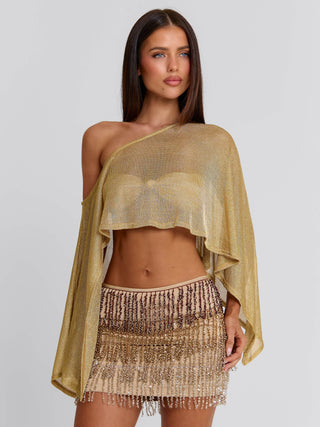 Meet our Valina Mini Skirt in Gold, a statement piece designed to move with you. Featuring cascading ombré sequin fringe, she catches the light with every step while creating a bold textured finish. Designed with a fitted silhouette and smooth satin lining, she pairs perfectly with the Valina Top for an elevated party or festival look.